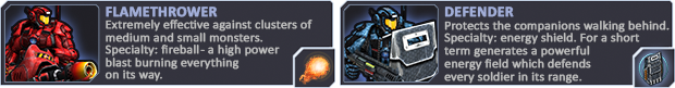 Defender – Protects the companions walking behind. Specialty: energy shield. For a short term generates a powerful energy field which defends every soldier in its range.