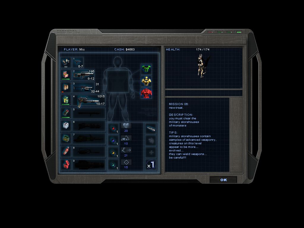 An improved version of a cult 2003 game which won hearts of the huge army of players worldwide. Complete game missions, earning more and more cash for weapons and inventory, use stationary weapons in the hottest places, eliminate monster spawning places with dynamite and increase your firepower with implants and drones.